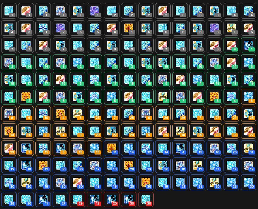 본인의 템 세팅 환산 수치에 따른 대략적인 효율 지표입니다.