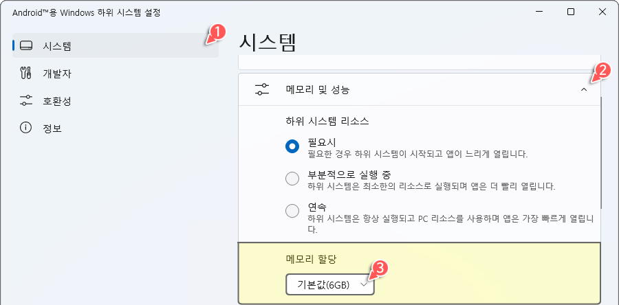 โ WSA 2304.40000.5.0 ๋ฒ์ ๋ถํฐ ์ฌ์ฉ์๊ฐ ์ง์ RAM ํ ๋น๋ ์ง์ ๊ฐ๋ฅ